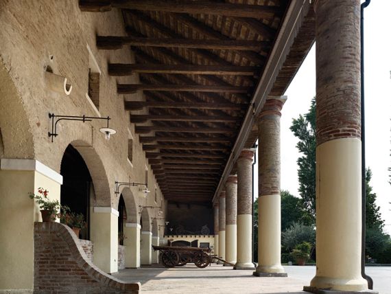 - Osservazioni: La barchessa è caratterizzata da un doppio porticato: quello esterno, con grandi colonne e piccoli capitelli tuscanici che sorreggono direttamente la falda del tetto, quello interno, con muro di spina ad arcate a tutto sesto.