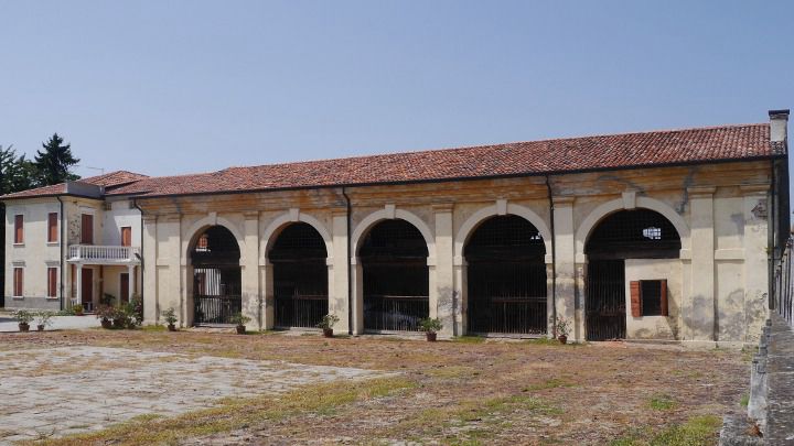 - Osservazioni: Barchessa porticata a cinque fornici su pilastri, ai quali sono addossate lesene con capitello tuscanico, binate agli spigoli.