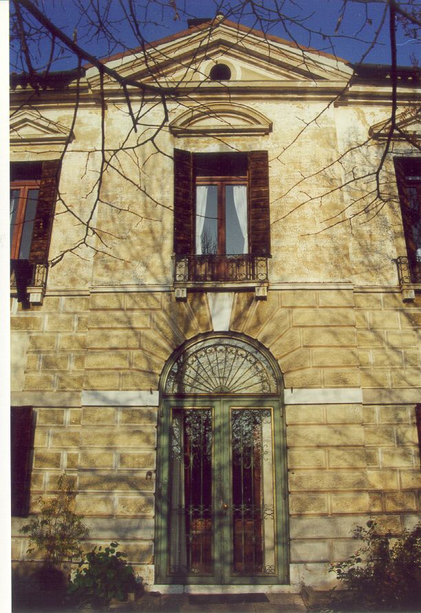 - Descrizione: Tutto il piano terra è arricchito da una finitura a finte bugne che in corrispondenza del vano centrale si dispongono radiali e in corrispondenza della chiave d'arco lasciano il posto ad un concio liscio in pietra bianca.