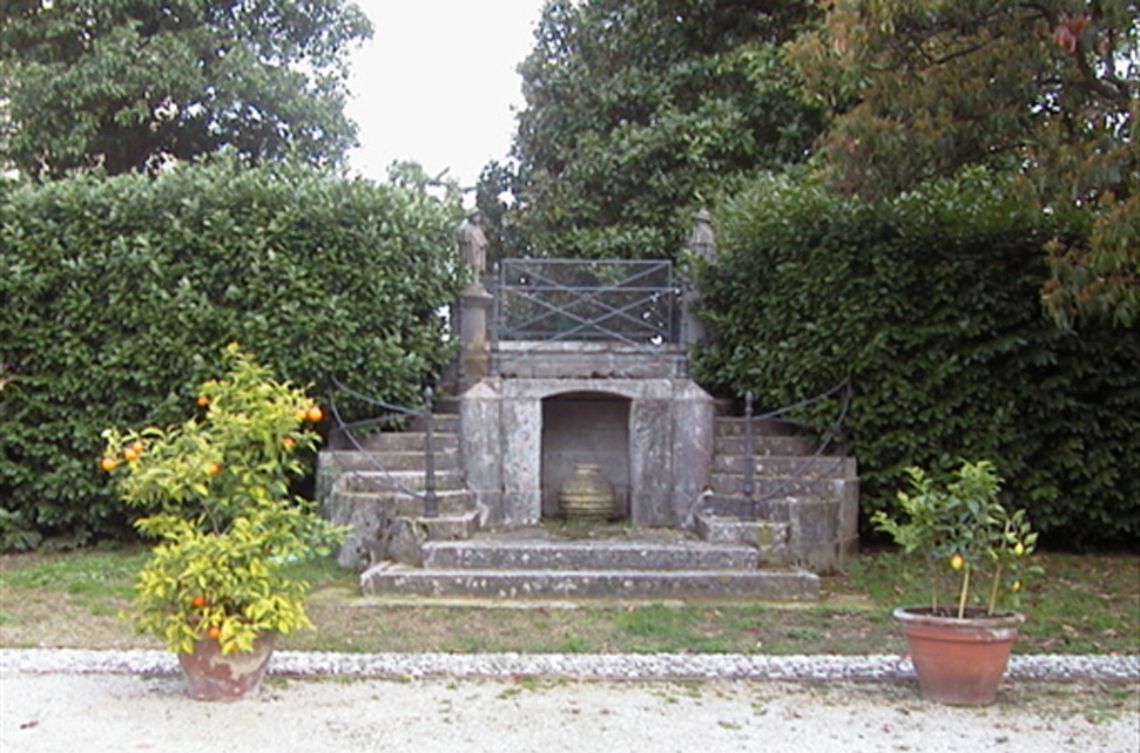 - Descrizione: Una piccola scala a due rampe semicircolari con nicchia al centro raccorda il giardino antistante la villa con la corte sottostante, dove affacciano le adiacenze.