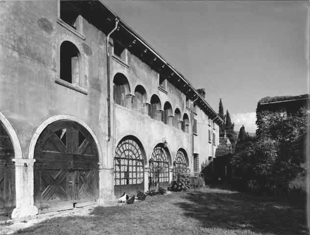 - Osservazioni: Costruito preesistenza di un edificio conventuale appartenente all'Abbazia di San Zeno di Verona, di pianta rettangolare ha nella facciata principale un portico con tre archi a tutto sesto su colonne ioniche e un loggia con stessi motivi, ma campata dimezzata, al piano nobile. Finestrelle quadrate nel sottotetto.