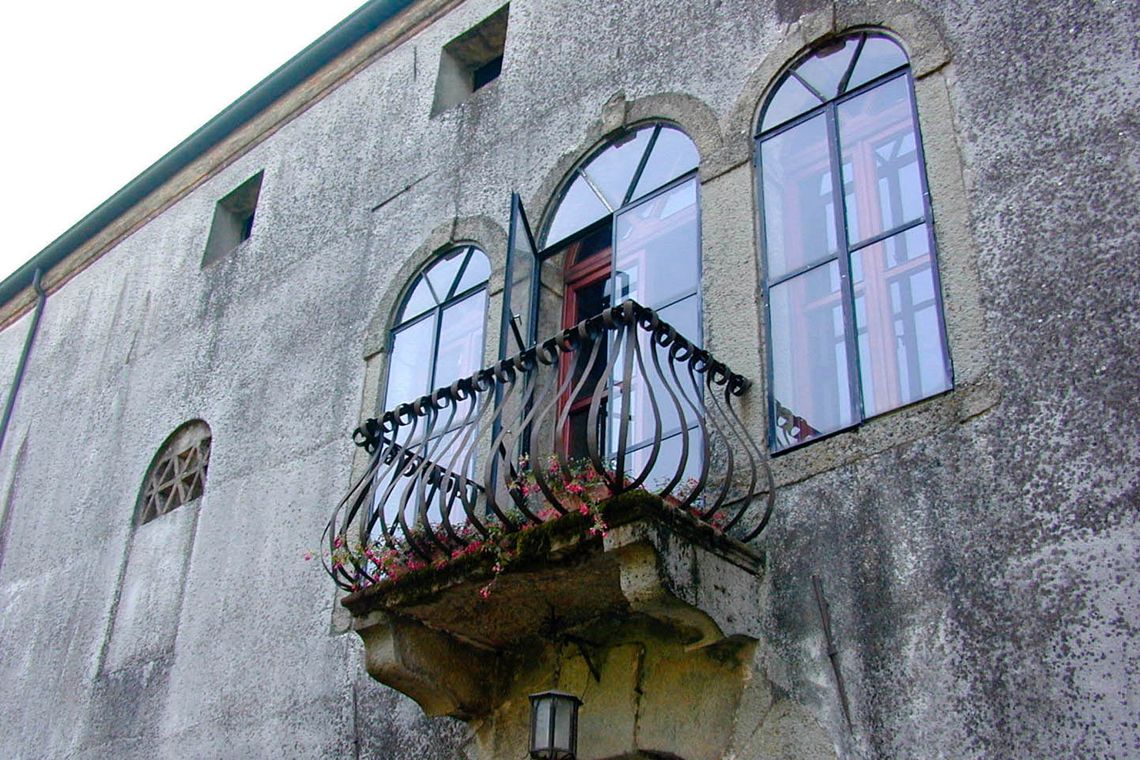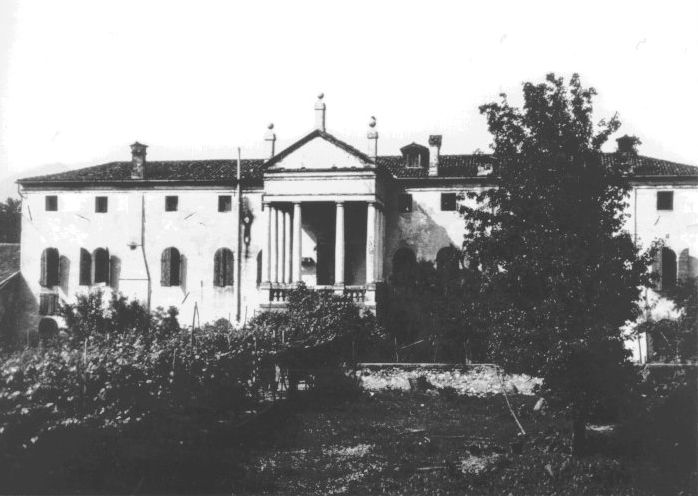 - Descrizione: Un terrazzino sul fronte posteriore della villa, con soglia e mensole di sostegno in trachite, ha una balaustra con ringhiera bombata in ferro.