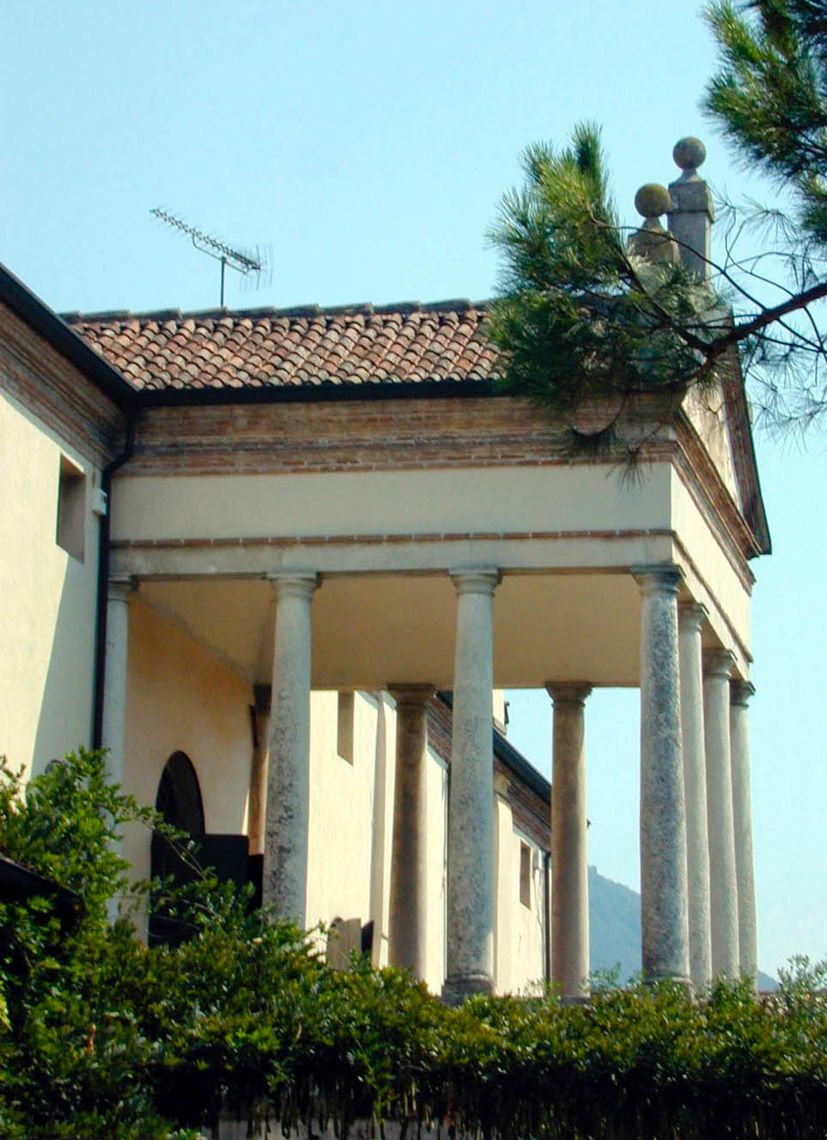 - Osservazioni: La villa ha la facciata con al centro un pronao tetrastilo, timpanato, aggettante rispetto alle ali disposte simmetricamente ai lati. L'aggetto si presenta a pianterreno con un portale archivoltato affiancato da oculi ellittici e, al livello superiore, con quattro colonne frontali e due laterali, poggiate su un alto plinto. Sopra l'alta trabeazione vi è un timpano triangolare.