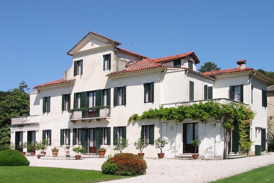 La casa padronale con facciata tripartita è organizzata su due livelli e sette assi, e risulta coronata da un abbaino ripetuto su ogni fronte. Le ali laterali, a un solo livello, sono coronate da un attico con terrazza. Una grande barchessa, un oratorio ottagonale e un grande parco romantico completano il complesso.Specifiche:
