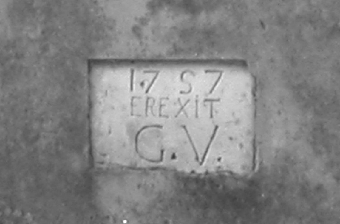 - Descrizione: Sulla parete settentrionale della villa, si conserva la seguente iscrizione: "1757 erexit G.V.".