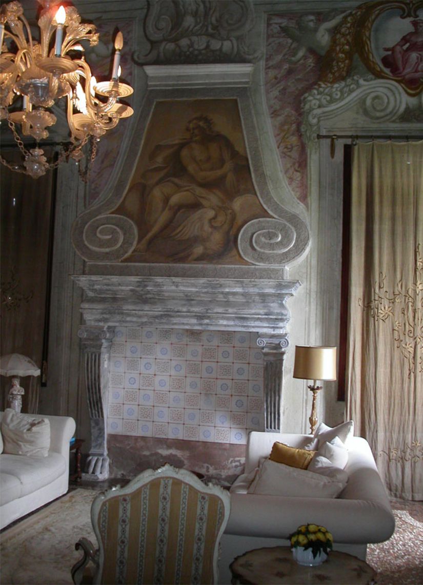 - Descrizione: All'interno, le sei stanze ai lati del salone centrale presentano le pareti decorate da affreschi privi di una tematica omogenea ma chiaramente ispirati alla celebrazione di uno dei committenti, Enea Repeta, e della sua carriera militare (sua effigie, scene inneggianti al valore militare e agli imperatori romani, "Storie di Enea"). La datazione proposta è tra l'ottavo ed il nono decennio del XVII secolo; l'autore è ignoto ma è stata ipotizzata una possibile vicinanza all'opera di Antonio Domenico Beverense.