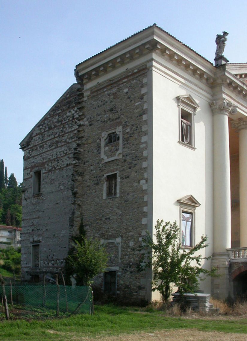 La villa sorge ai piedi del colle della Fratta e occupa con le sue adiacenze una vasta area aperta. Il complesso è composto dall'edificio padronale, la barchessa porticata su basamento e la torre colombara. Il prospetto principale della villa è rivolto a sud e si apre con un pronao che introduce all'atrio. Sul fianco destro un'ala di uguale altezza e composizione formale del prospetto della casa padronale.Specifiche: