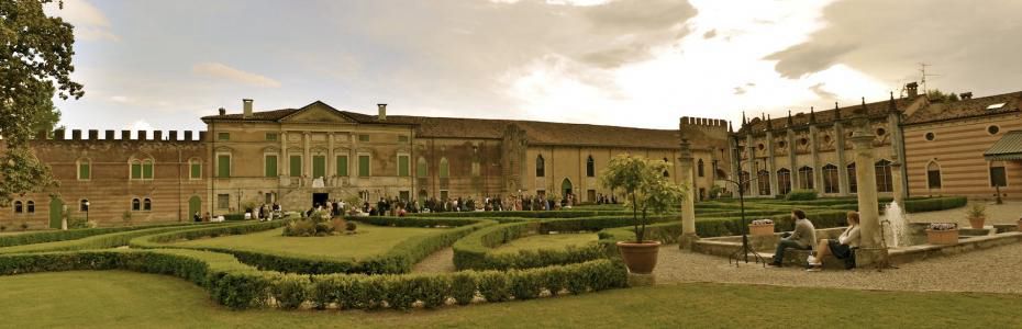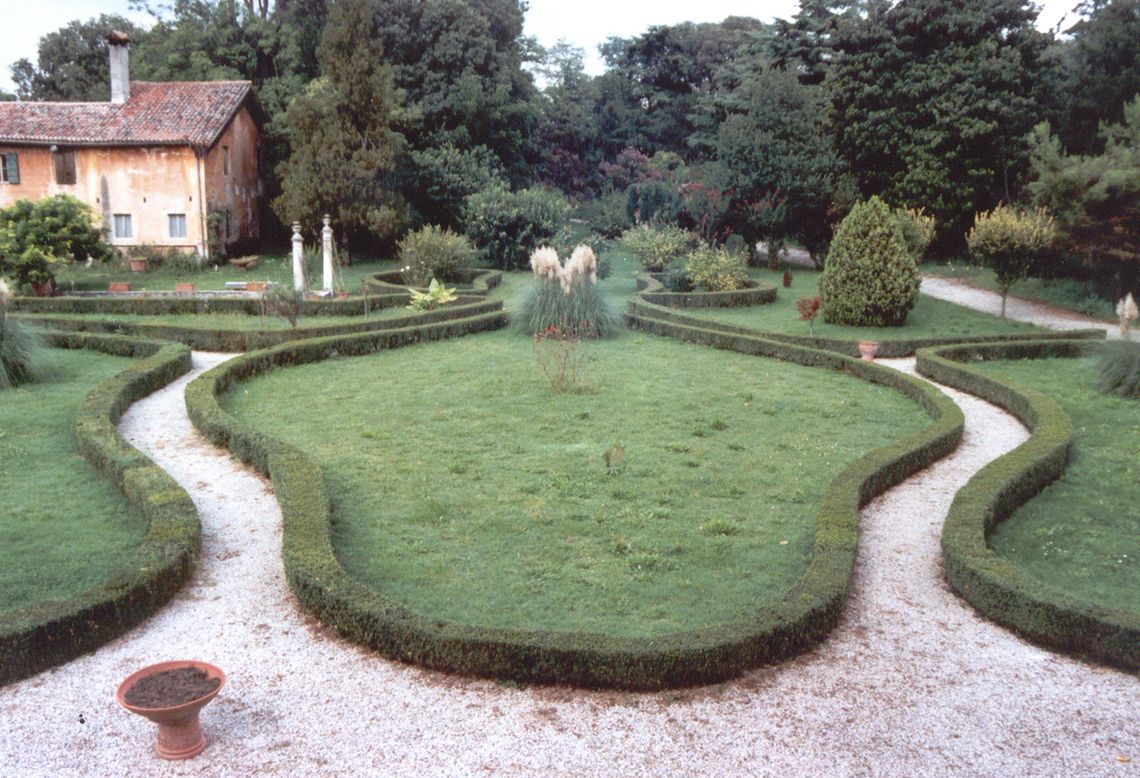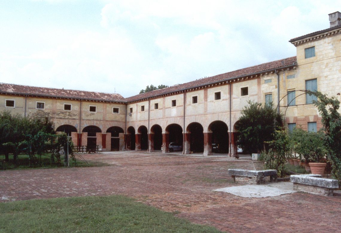Il complesso si articola con i corpi di fabbrica distribuiti attorno alla corte. Il più importante ed imponente è il fronte con il corpo padronale, sul retro del quale, il fronte sobrio si apre su una grande aia, con pavimento in cotto, bordata in tufo, con numerosi corpi di fabbrica che la delimitano a testimonianza di una grossa azienda agricola, dedita in particolar modo alla risicoltura. L'ala a nord-ovest del corpo centrale è ripartita su due piani. A chiudere il lato nord-ovest del giardino è posizionata la serra. Chiude il lato a sud-est un corpo su due livelli con porticato ad archi ribassati che poggiano su colonne in pietra a piano terra. Attigua alla serra è situata una barchessa un tempo adibita a stalla padronale, rimessa per le carrozze e alloggio di servizio. Segue, a chiudere l'angolo nord-ovest del giardino, la chiesa dedicata a San Matteo, arricchita del campanile a tre campane dalla famiglia Gritti. Fa parte del giardino all'inglese la vasca d'acqua, antistante la barchessa, segnata agli angoli da alti pilastri in pietra. In fondo al giardino che circonda l'aia insiste infine un rustico del tardo Cinquecento con porticato a piano terra. Dietro il porticato si trova il rustico con doppia destinazione di abitazione e magazzino. Seminascosto dagli alberi lungo il corso d'acqua che attraversa la proprietà si trova l'antico mulino.Specifiche: