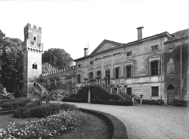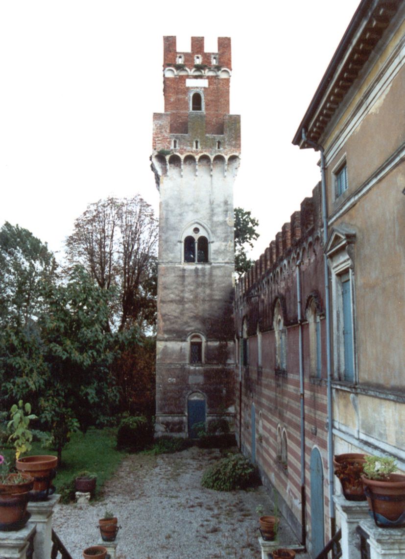 - Osservazioni: Addossata all'estremità dell'ala nord-est. La parte più bassa della torre, realizzata nell'aprile del 1856, porta il nome di "torre Antonietta" a ricordare il matrimonio del figlio Carlo, mentre la parte superiore merlata in stile gotico veneziano è denominata "torre Eleonora" e ricorda il matrimonio dello stesso Giulio; quest'ultima parte venne costruita nel settembre 1890.
