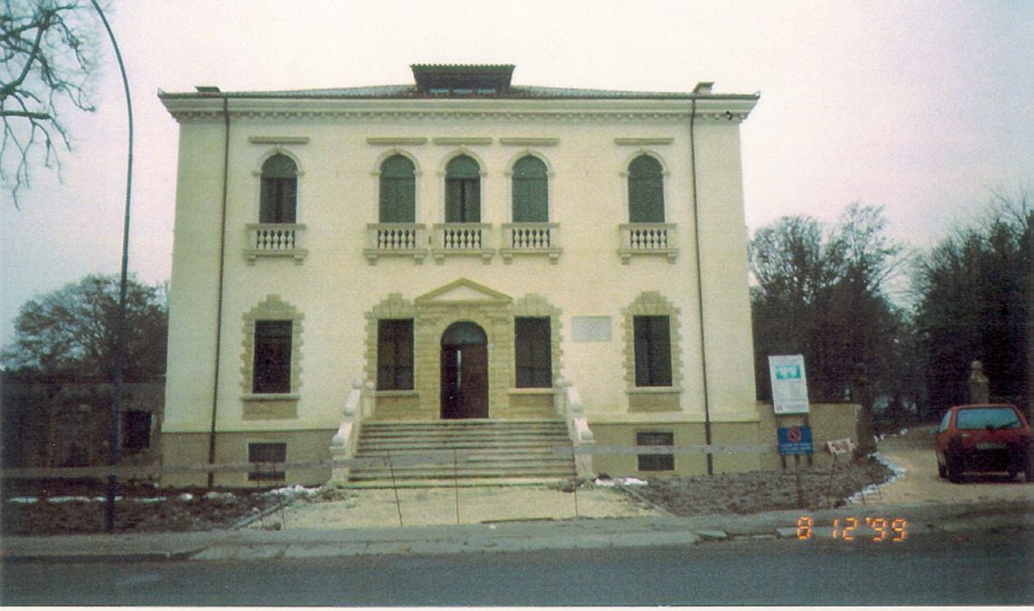 - Descrizione: Le ampie finestre architravate che illuminano il piano rialzato (due accostate al portale d'ingresso e due nei settori laterali della facciata) presentano cornici a grosse bugne alterne, in pietra di Nanto, e specchiatura sottodavanzale dipinta.
