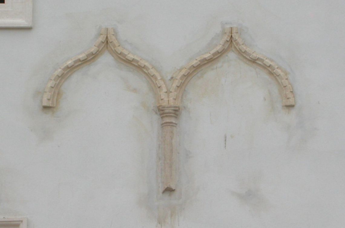 - Descrizione: Resti di una bifora a profilo archiacuto con cornice a torciglione e parte della colonnina centrale.