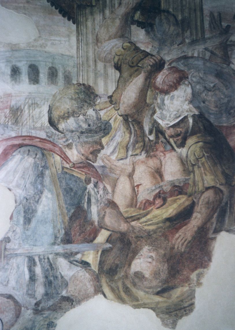 - Descrizione: Altro ciclo pittorico non ancora restaurato, anche se la tradizione orale riferisce trattarsi di episodi relativi all'Eneide. «Si riconoscono tra le rappresentazioni l'inganno del cavallo di Troia e l'incendio della città, la fuga di Enea che porta sulle spalle il padre Anchise, l'accoglienza di Didone e la sua tragica morte» (Viviani, 1975).