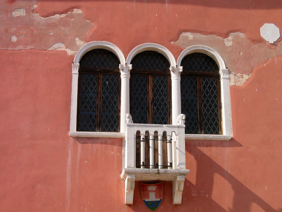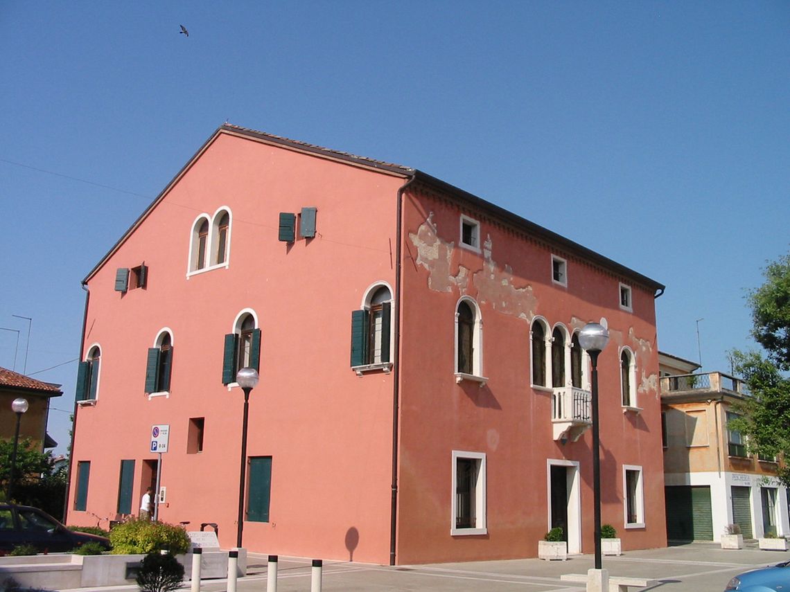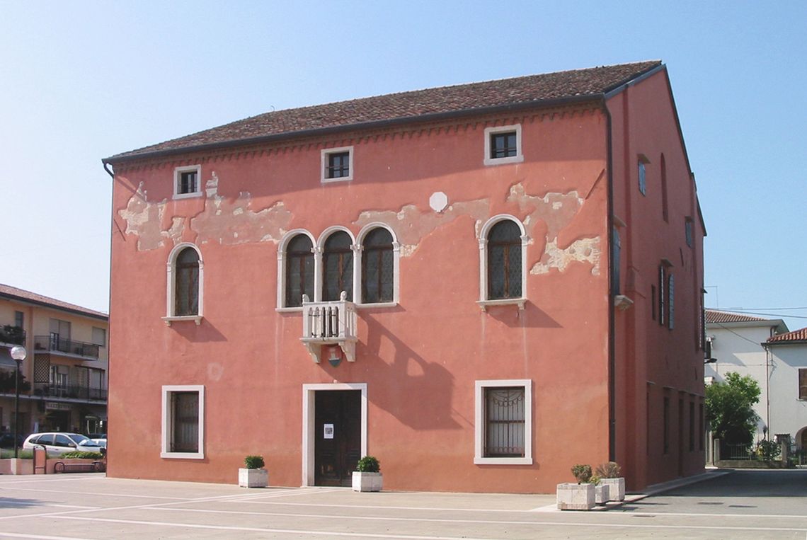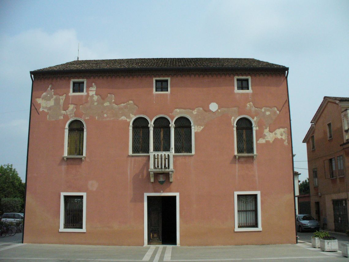 Il palazzo ha pianta quadrangolare e si eleva per tre piani riprendendo il tipo della casa veneziana. La facciata è tripartita con trifora e balcone centrale.Specifiche: