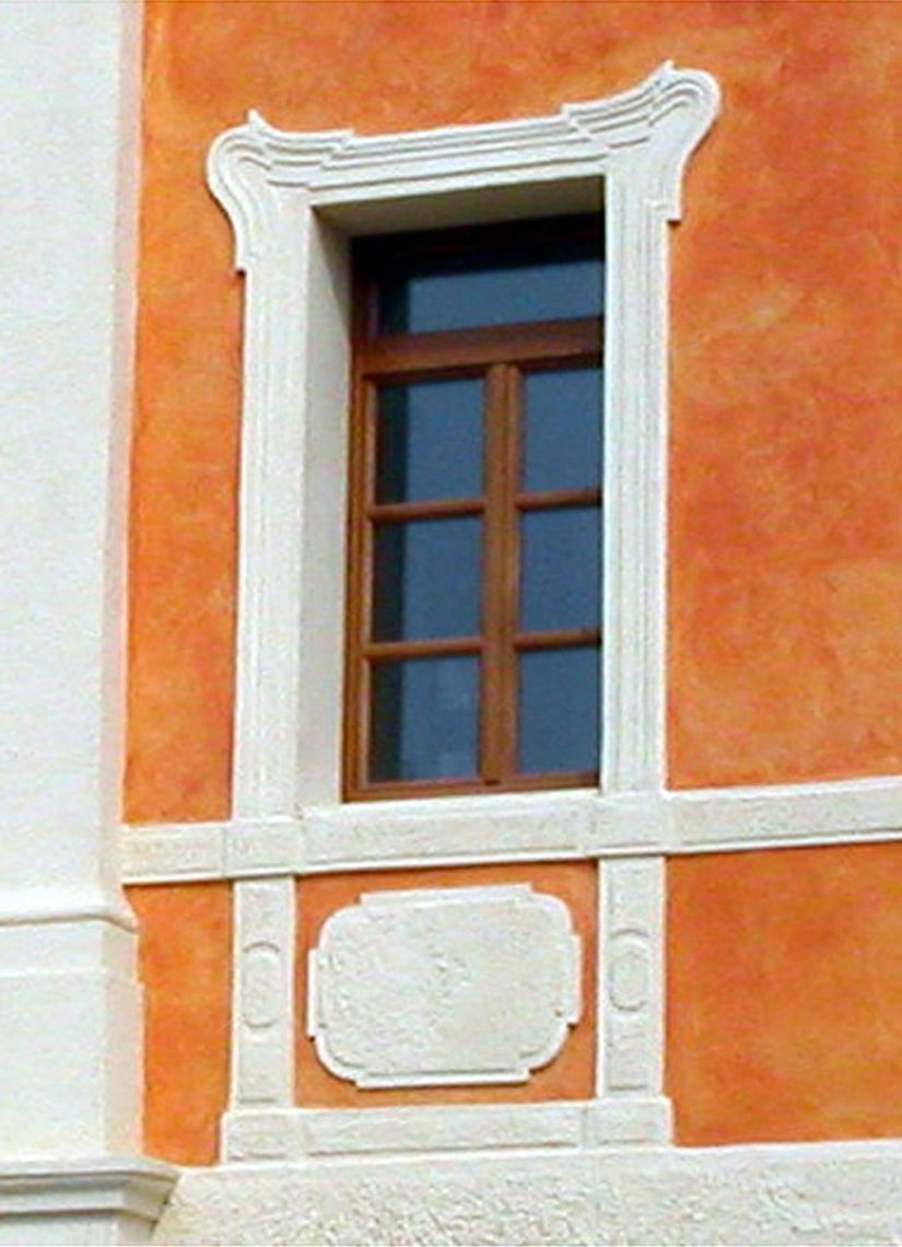 - Descrizione: Insolite cornici di gusto rococò di diversa fattura decorano le finestre del piano nobile e del sottotetto, sia sul fronte sud che su quello orientale, rivolto alla strada.