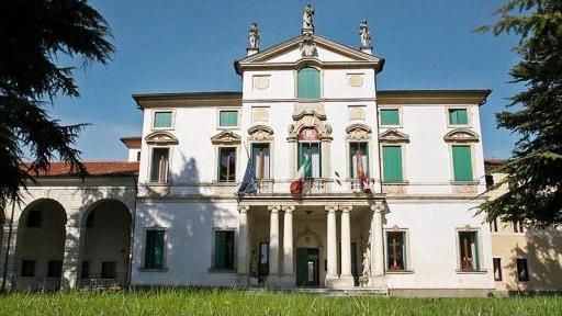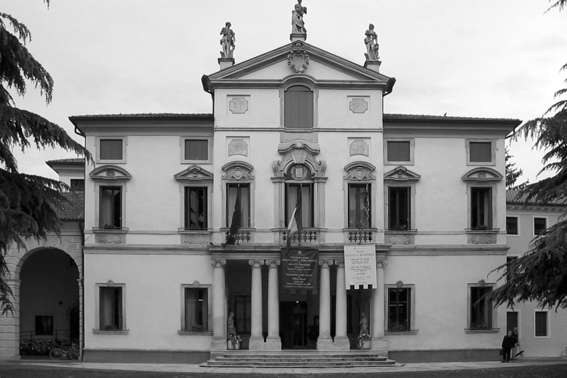 - Descrizione: Elaborate e diversificate cornici arricchiscono tutti i fori del fronte principale e del sottoportico della barchessa (a profilo centinato, con teste femminili in chiave d'arco).