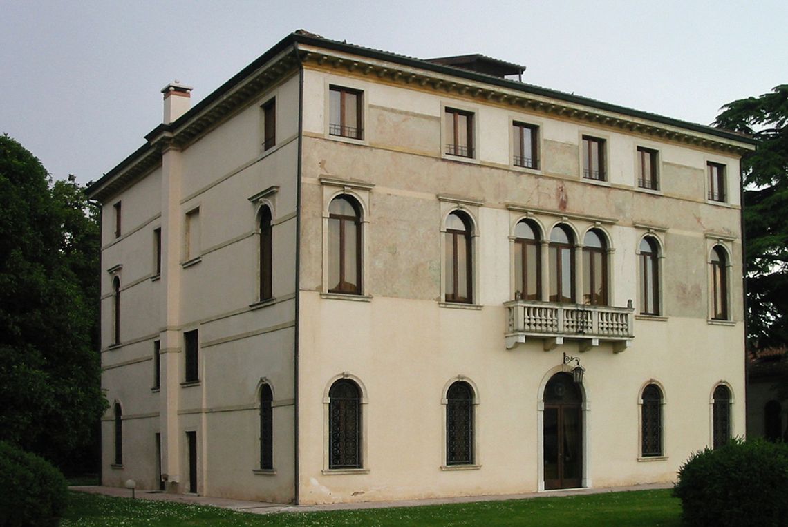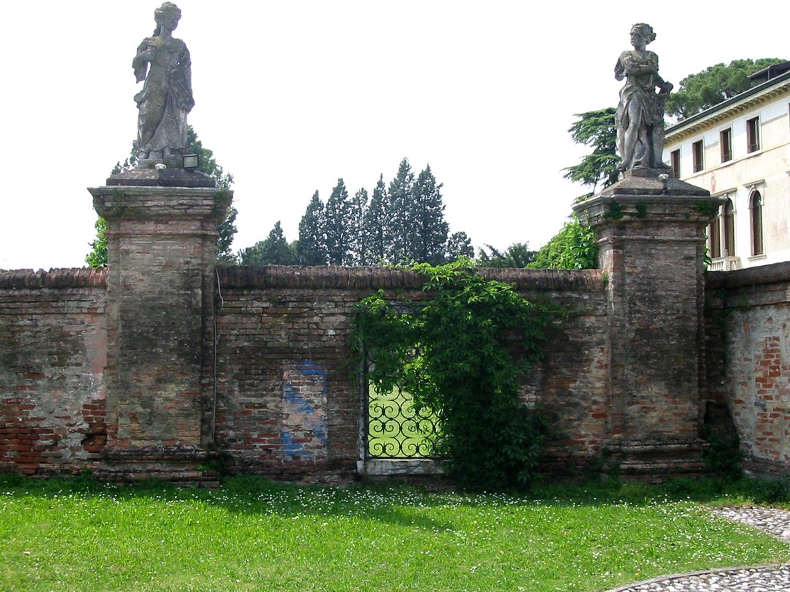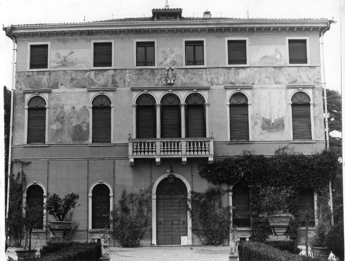 - Descrizione: La decorazione, è costituita da dieci scene affrescate nei soffitti di nove stanze della barchessa di destra. Al centro della barchessa, sul lato verso il cortile, la porta dentrata, sormontata da un timpano, conduce a una sala da ballo quadrata (poi adibita a biblioteca), il cui soffitto presenta una balaustra sagomata da cui si affacciano dei musici. Al centro dellaffresco e visibile una figura allegorica e dei putti, oggi assai sbiaditi. A sinistra, la sala da ballo comunica con due stanze di piccole dimensioni sui cui soffitti sono affrescati "Apollo che consegna il carro a Fetonte" e "Venere, Bacco e Arianna". Le due stanze conducono a un salone longitudinale, privo di decorazioni, dal quale si accede a due sale minori, speculari alle precedenti, nei cui soffitti campeggiano "Il Tempo e la Verità" (forse in origine rappresentante l' "Aurora") e "Zefiro e Flora". Sul lato destro della sala da ballo si apre uninfilata di stanze che presenta una disposizione analoga a quella della parte sinistra. I soffitti dei primi due vani presentano rispettivamente "Venere e Marte" (sullo sfondo, dei putti recano la rete realizzata da Vulcano) e "Giove", "Giunone" e "Mercurio" che accolgono "Psiche"(?). La successiva sala lunga presenta "Apollo e le Muse" (in un angolo si riconosce limmagine di "Nettuno"). Lultima sala presenta due brani: uno con "Giove, Giunone e Io", e un altro non più leggibile.