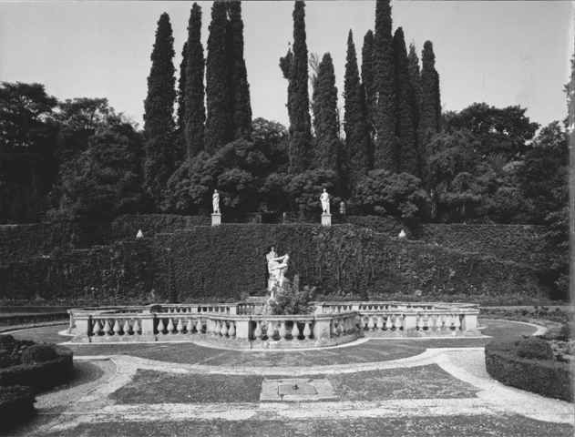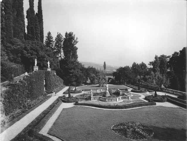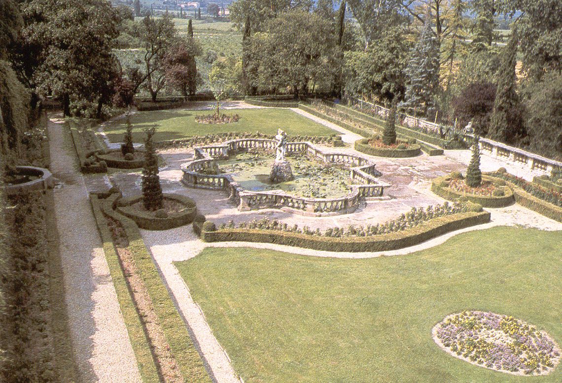 - Osservazioni: ampio giardino all'italiana rettangolare, con terrazzamenti che lo delimitano assecondando la pendenza del terreno, definiti da mura possenti verso oriente e occidente. Il terrazzamento del giardino, disposto al livello della casa, presenta aiuole geometriche, fontane polilobate e una peschiera con al centro un gruppo marmoreo.