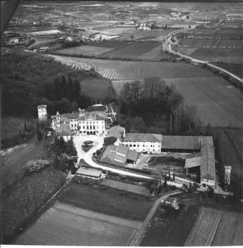 Il complesso è costituito attualmente da numerosi corpi di fabbrica che si compongono a formare due corti a "U", orientate verso sud, di forma irregolare, separate da un edificio adibito a barchessa. La corte principale, disposta a ovest, su cui affaccia l'edificio dominicale, è formata da bracci che si raccolgono intorno alla corte in modo non perfettamente ortogonale, racchiudendosi verso il viale alberato d'accesso a sud. Diversi corpi edilizi costituiscono i rustici della corte verso est; questi hanno subito aggiunte, ammodernamenti e ampie modifiche come l'adattamento dei loro locali a magazzini e a essiccatoi per il tabacco. Rivolta a sud è la villa, costituita da un edificio principale e affiancata a sinistra da un'ulteriore ala con il fronte arretrato rispetto all'edificio centrale, che piega a "L", pur mantenendone gli stessi caratteri compositivi e decorativi; continua il fronte un edificio residenziale leggermente più basso, che ingloba in esso il corpo della cappella. Il corpo isolato della torre colombara si distingue invece a nord-ovest, appena discosto dagli edifici costituenti la corte principale. Attraverso una maestosa scalinata si arriva al laghetto e alle grotte, situati sul terrazzamento al livello inferiore, nella parte terminale del giardino.Specifiche: