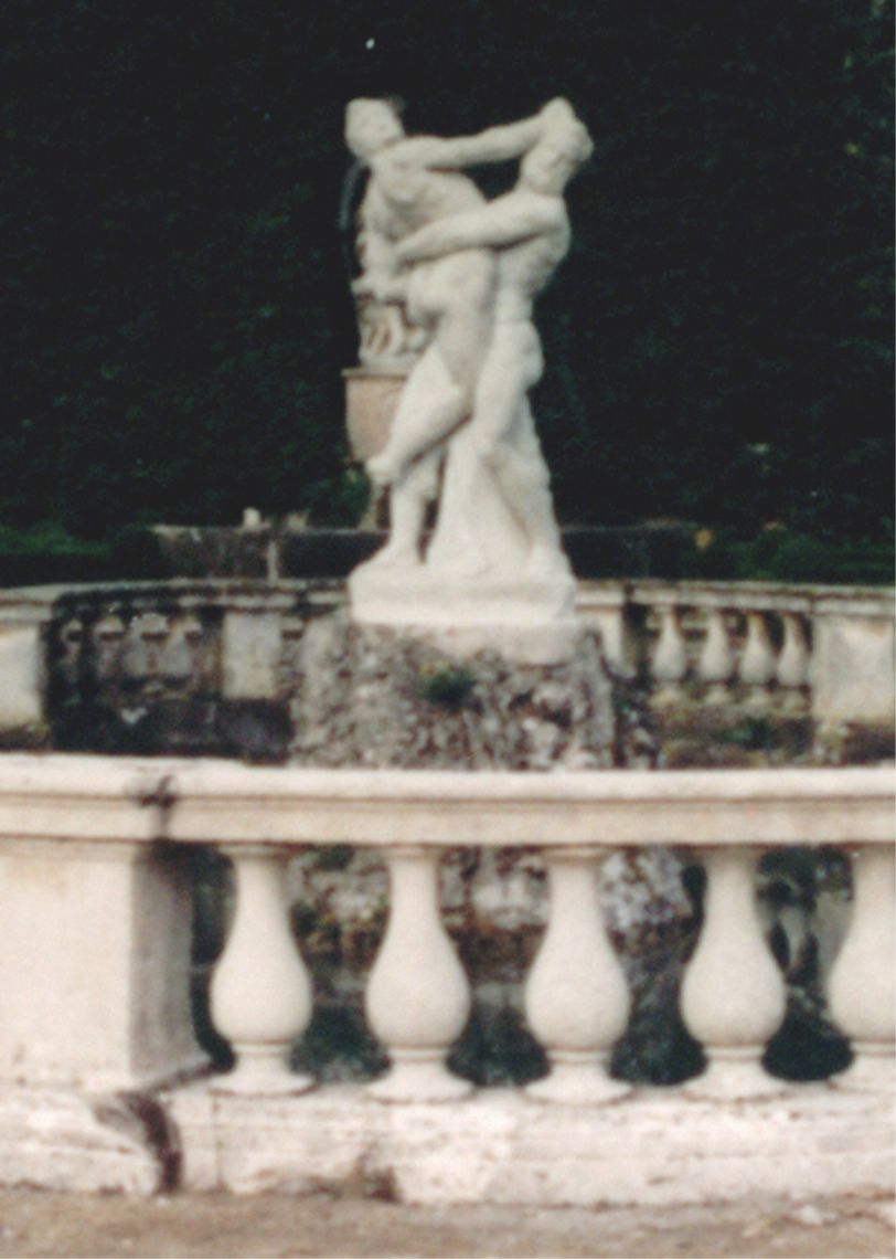 - Descrizione: Nel giardino all'italiana, "Ercole lottante con Anteo", già menzionato nel 1717 nelle "Vite" di Bartolomeo Dal Pozzo e lodato come elemento di grande bellezza.