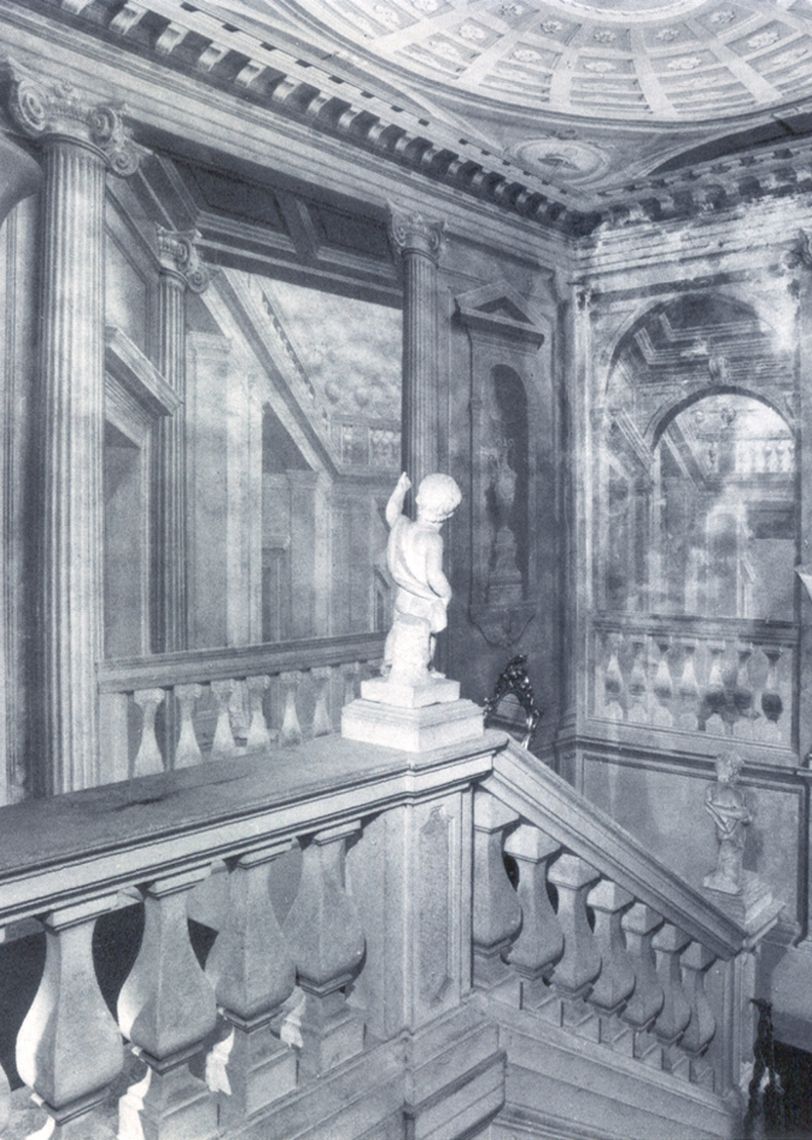 - Descrizione: salone al primo piano; grandi affreschi a finte architetture