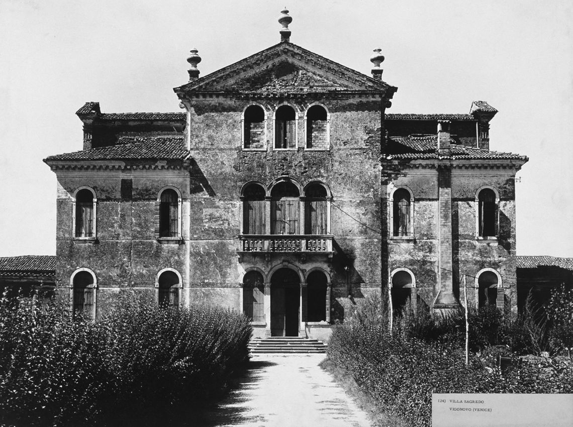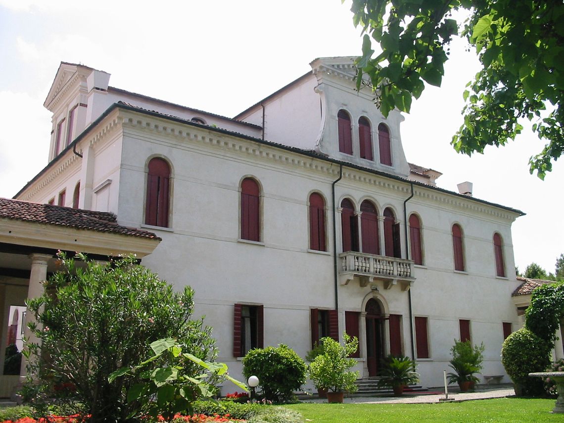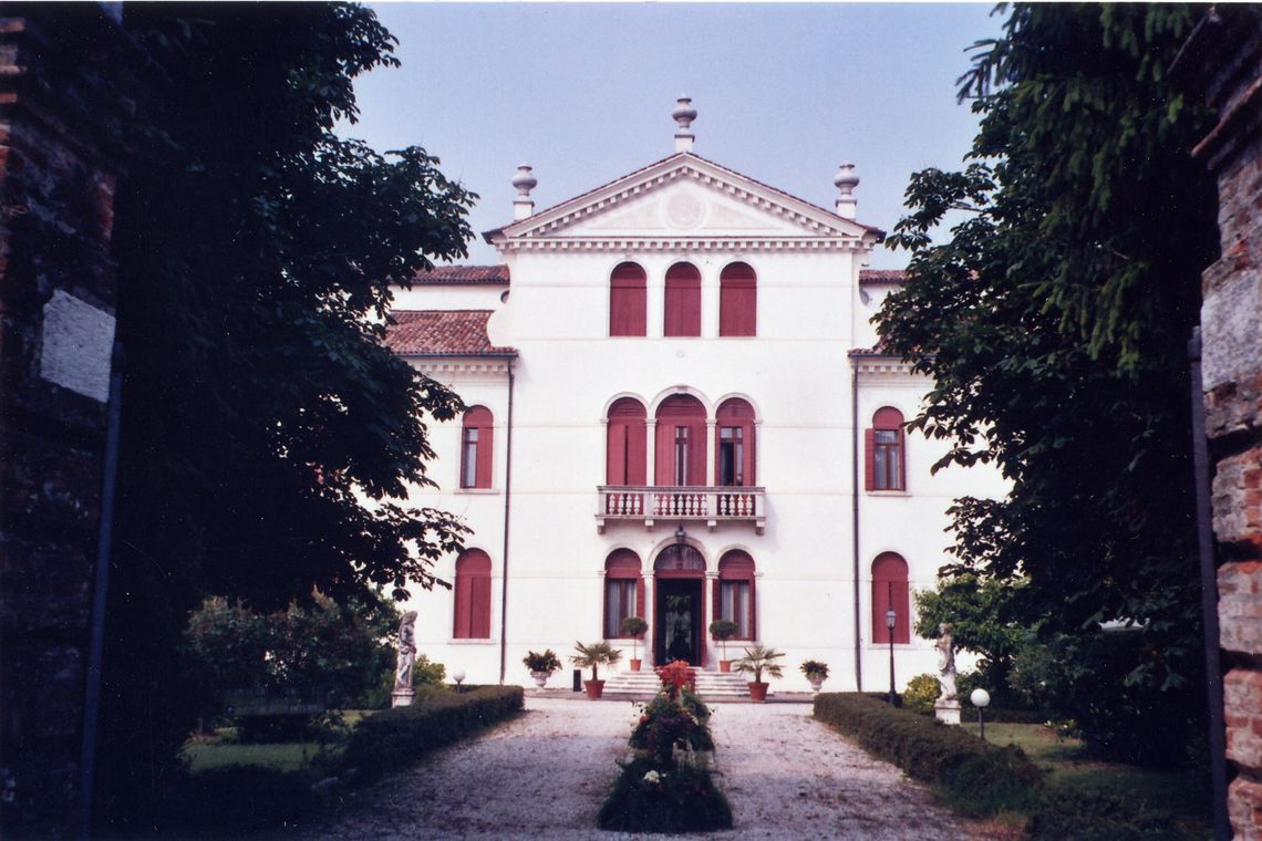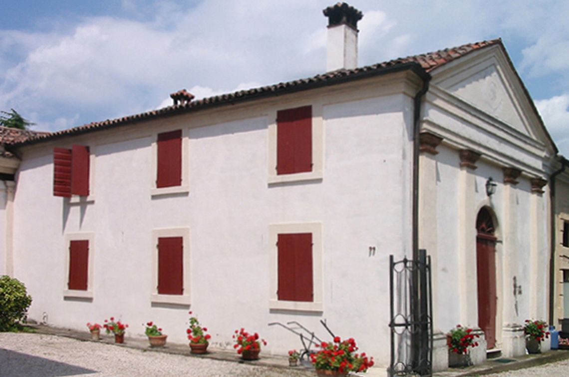 Complesso costituito da villa, ali affiancate, barchessa, rustico e oratorio. Villa a pianta rettangolare, su due piani, con facciate principali identiche. Parte centrale sopraelevata con lunghi abbaini incrociati e terminati da timpani triangolari. Finestre centinate e trifore centrali a piano primo e secondo. Vasi acroteriali sulla sola facciata principale. Ali laterali, su due piani, agganciate alla villa tramite due loggiati con colonne doriche. Lunga barchessa su due piani, disposta a L, con arcate a tutto sesto. Oratorio a Est della villa, a una navata, con timpano triangolare.Specifiche: