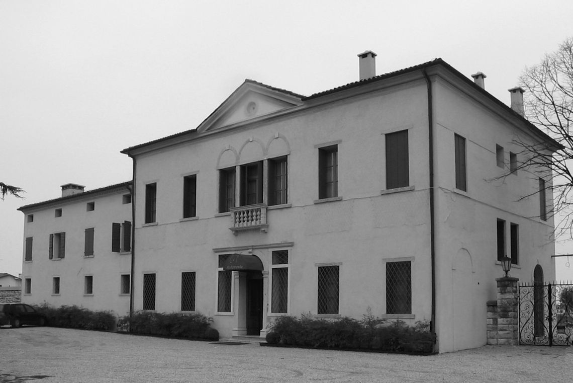 Il complesso, situato ai limiti dell'abitato ed in prossimità del bivio su cui si innesta la strada per Romano d'Ezzelino, si compone di più corpi di fabbrica disposti a "L", in modo da delimitare una corte-giardino rivolta a sud. Prospiciente la strada si eleva il corpo della villa, a cui si congiunge una più bassa adiacenza, di fronte alla quale, perpendicolare ed isolato, si protende un lungo edificio rustico.Specifiche: