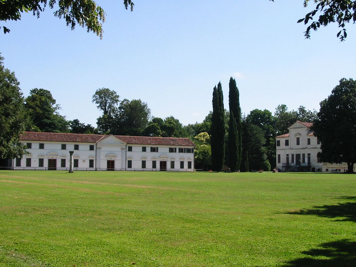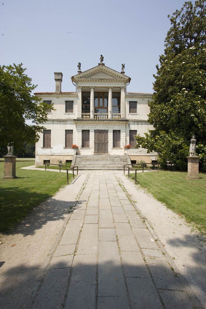 Complesso costituito da villa più adiacenze. Villa a pianta quadrata su due livelli più seminterrato. Grande scalinata a rampa unica e balaustre sul pianerottolo. Corpo centrale sopraelevato con loggia dotata di due alte colonne ioniche e due paraste laterali. Grande timpano triangolare sommitale coronato da statue seicentesche (Marinali?). A settentrione, corpo di fabbrica distaccato di grandi dimensioni, su due livelli. Parte centrale coronata da timpano triangolare.Specifiche: