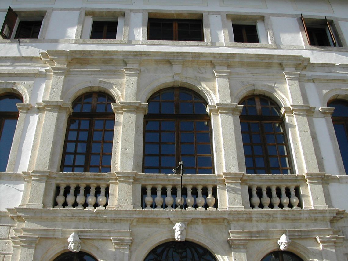 - Descrizione: Tre grandi mascheroni sono scolpiti in rilievo sulle chiavi di volta dell'elegante trifora d'ingresso al pianterreno del palazzo.