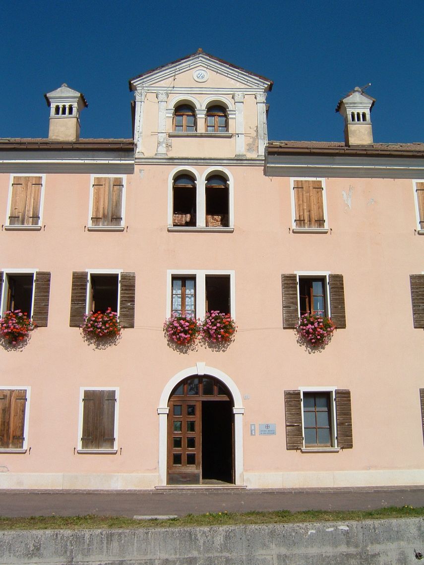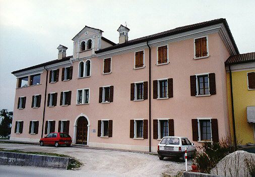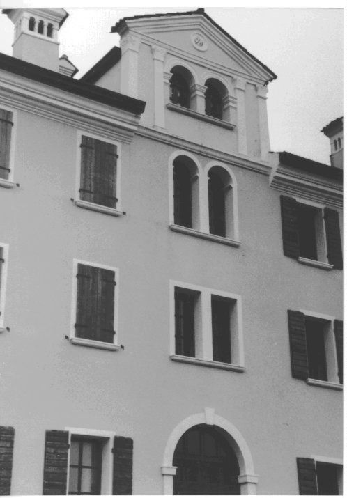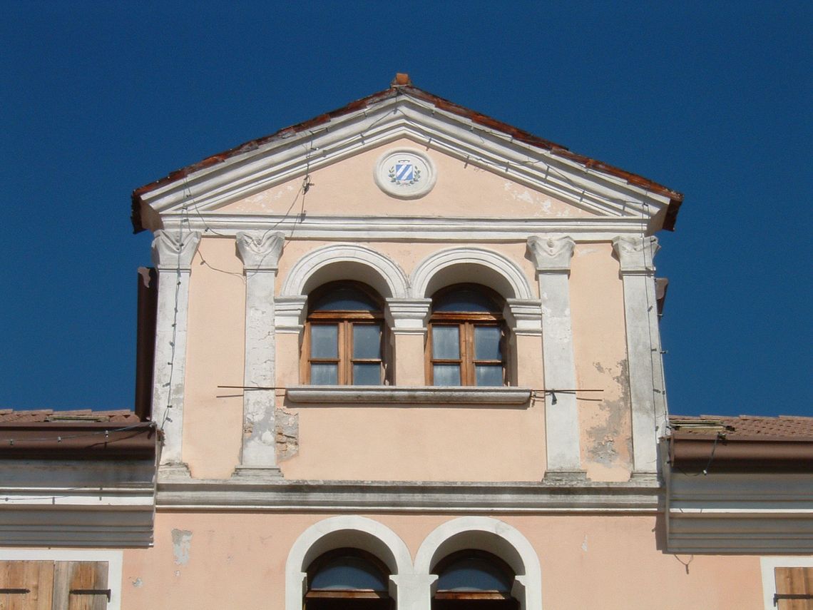 - Osservazioni: Al di sopra della linea di gronda si sviluppa un piccolo sopralzo timpanato con quattro paraste in pietra con capitelli a foglia che sorreggono il timpano.