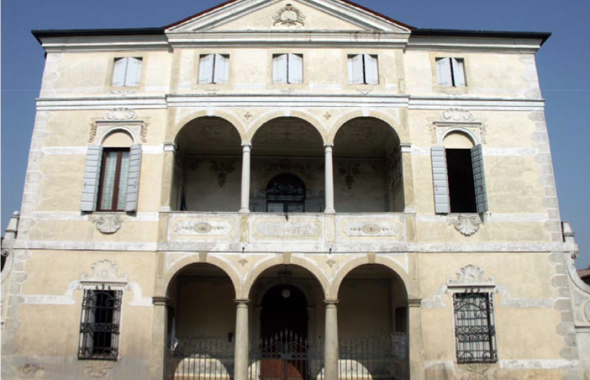 La villa è quinta su strada. Si eleva di tre livelli ed è caratterizzata da un loggiato, sia al piano terra che al piano nobile. Esso si apre con tre archi a tutto sesto su colonnine. La parte centrale del prospetto è coronata da timpano. All'interno tradizionale tripartizione della villa veneta con salone passante e stanze laterali.Elementi Decorativi: