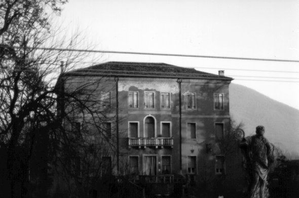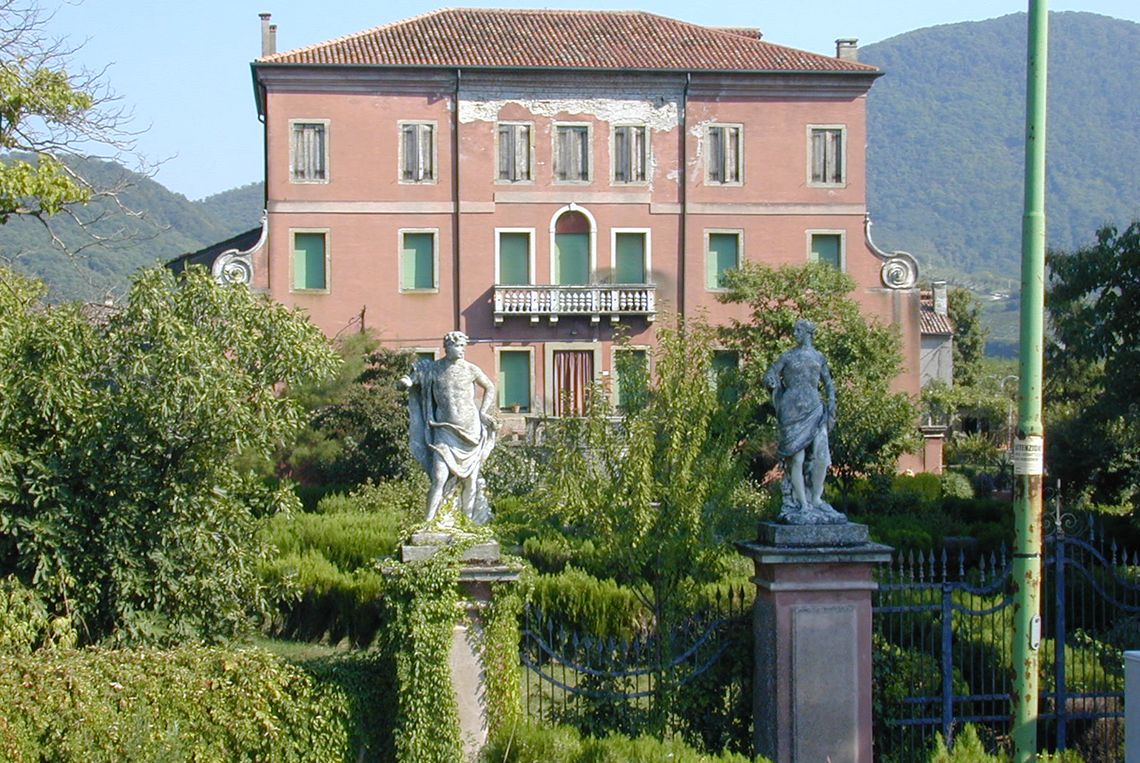La villa è a pianta rettangolare, si eleva di tre piani sopra un alto zoccolo. Il fronte principale è impaginato su sette assi con l'ingresso principale architravato e portafinestra archivoltata al piano nobile con affaccio su terrazzino con balaustra lapidea. Giardino con alberi secolari e ghiacciaia. L'accesso è di fronte al ponte sul canale Bisatto.Elementi Decorativi: