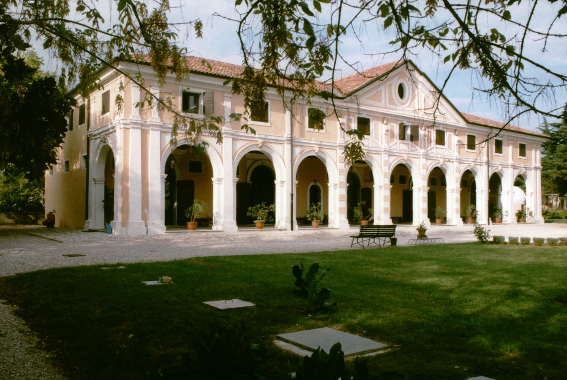 Del complesso settecentesco rimangono gli edifici disposti in linea comprendenti il copro padronale, due basse ali laterali e un oratorio e una barchessa staccata a nord.Specifiche: