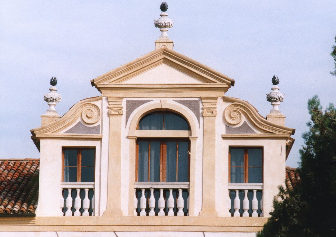 - Descrizione: Sul prospetto principale si è rinvenuto un intonachino rosato con tracce di pitturazioni nere e rosse, probabilmente eseguite in epoca contemporanea alla villa.