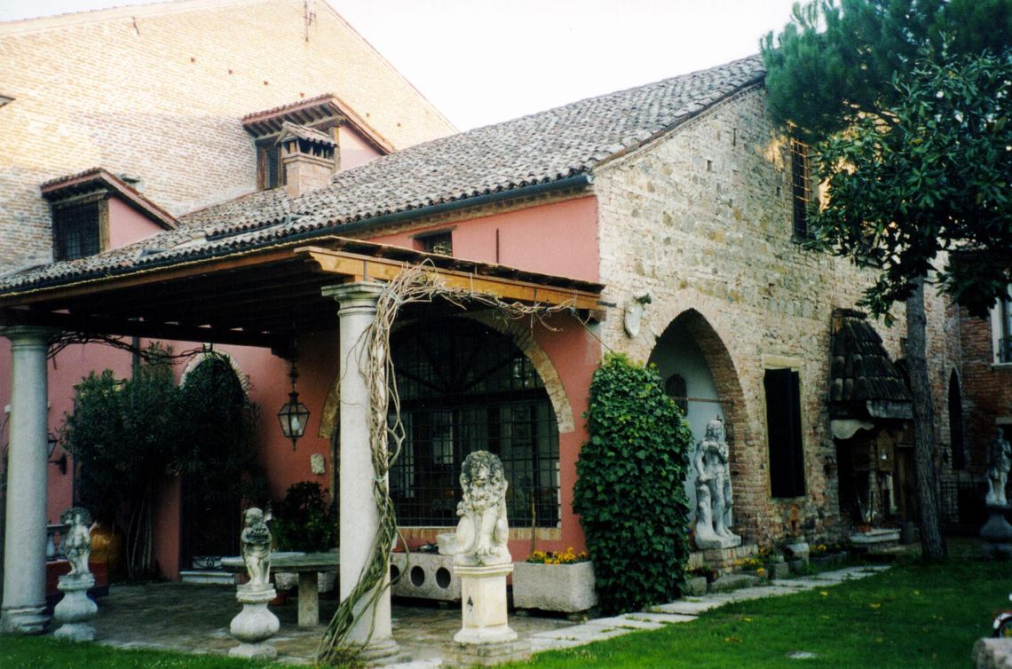 - Descrizione: Uno sporto con soglia in pietra, visivamente sostenuto da mensole, sormonta la chiave del portale d'ingresso.