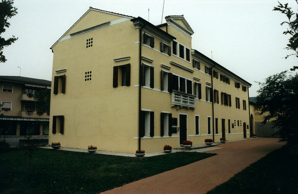 Il complesso, situato nel centro abitato, è formato dalla villa e da un edificio posto in adiacenza, entrambi collegati attraverso un passaggio ad arco ad un altro fabbricato più basso, posto ortogonalmente e proteso verso il giardino.Specifiche: