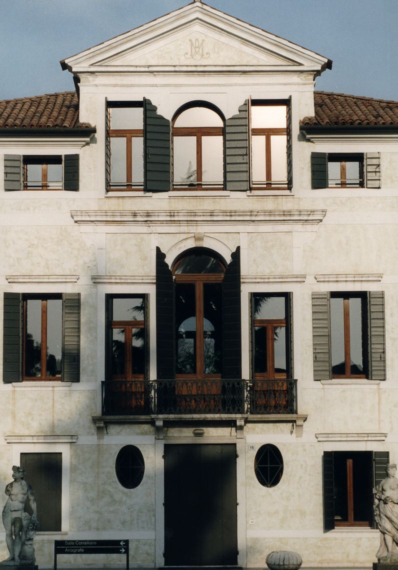 - Osservazioni: La facciata principale è caratterizzata da uno schema simmetrico e tripartito, con fulcro nella finta serliana al primo piano, rimarcato dal sopralzo timpanato con aperture distinte.
