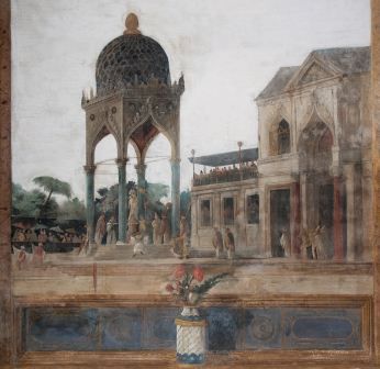 - Descrizione: Piano terreno: "saletta cinese" ove finte finestre in trompe l'oeil inquadrano paesaggi orientaleggianti.