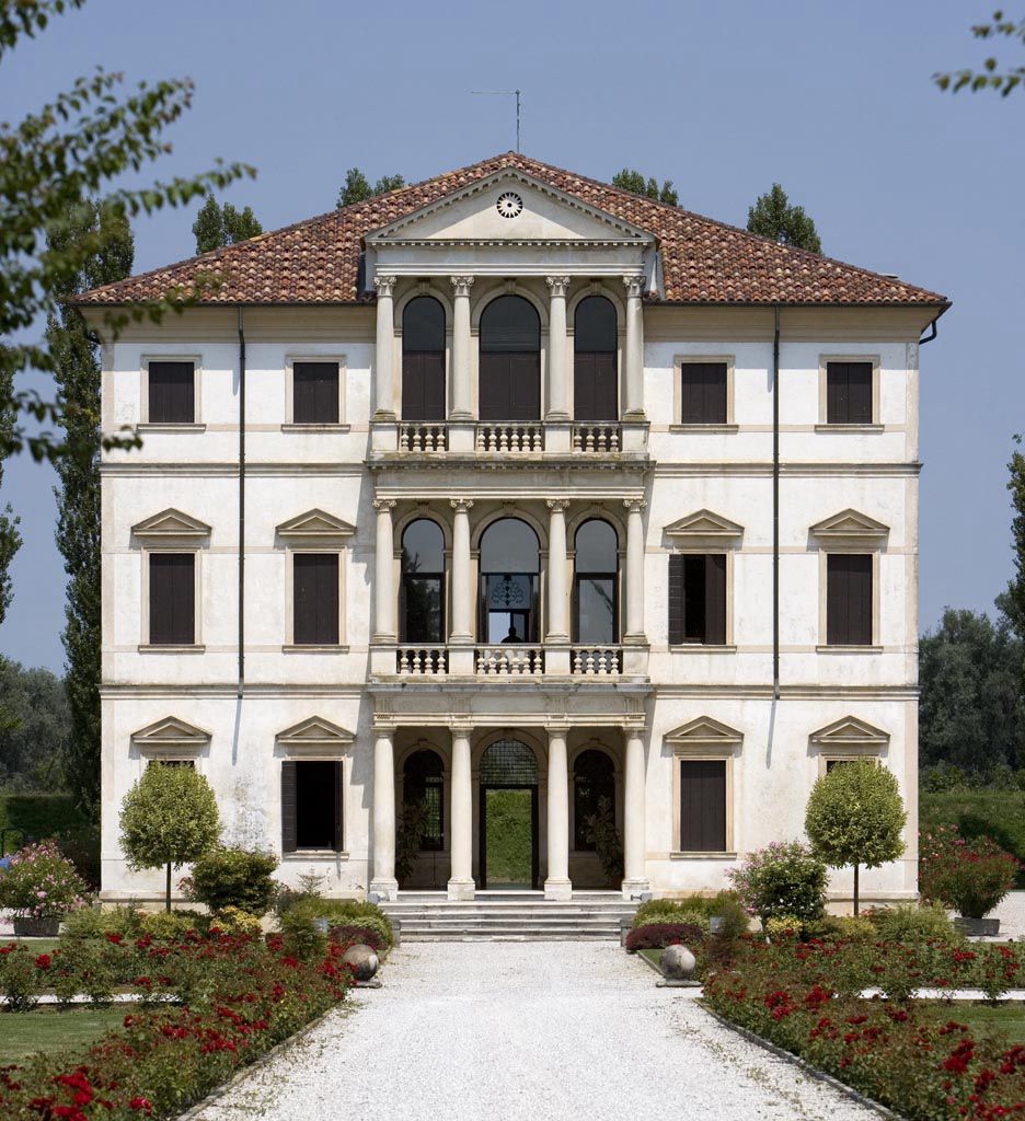La villa ha una pianta pressoché quadrata; in alzato presenta tre ordini di finestre e la parte centrale della facciata è caratterizzata da sopraelevazione chiusa da timpano e loggiato su colonne ad ogni piano, con il susseguirsi dell'ordine tuscanico, ionico, corinzio. Gli interni della villa riprendono la tradizionale distribuzione spaziale con salone al centro e stanze laterali.Elementi Decorativi: