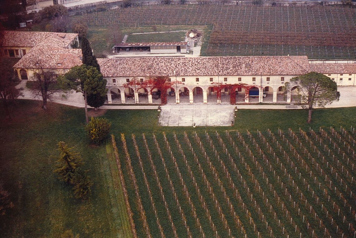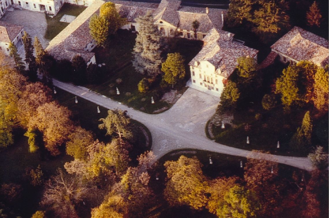 Il complesso, situato nel centro abitato, lungo il fiume Meschio, è circondato da un parco con lungo viale d'accesso affiancato da alberi d'alto fusto. Si compone di un corpo padronale, di due barchesse laterali simmetriche che delimitano, con la loro disposizione ad "L", la corte antistante al corpo stesso, e di un edificio porticato situato ad est, parallelamente alla strada.Specifiche: