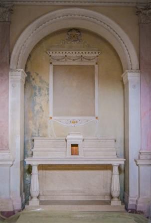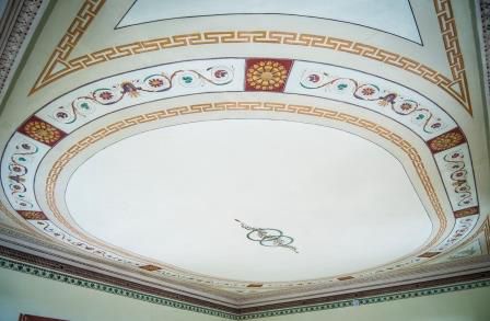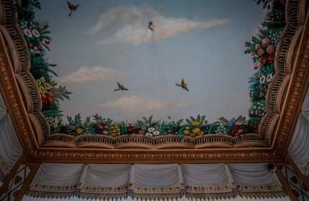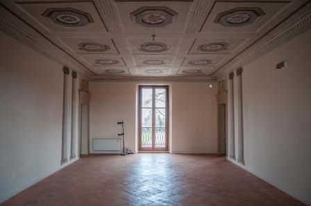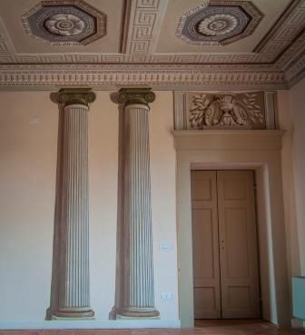 - Descrizione: Interne che riproducono elementi architettonici sia alle pareti che sul soffitto con rappresentazioni di colonne, cornici e soffitti a cassettoni.