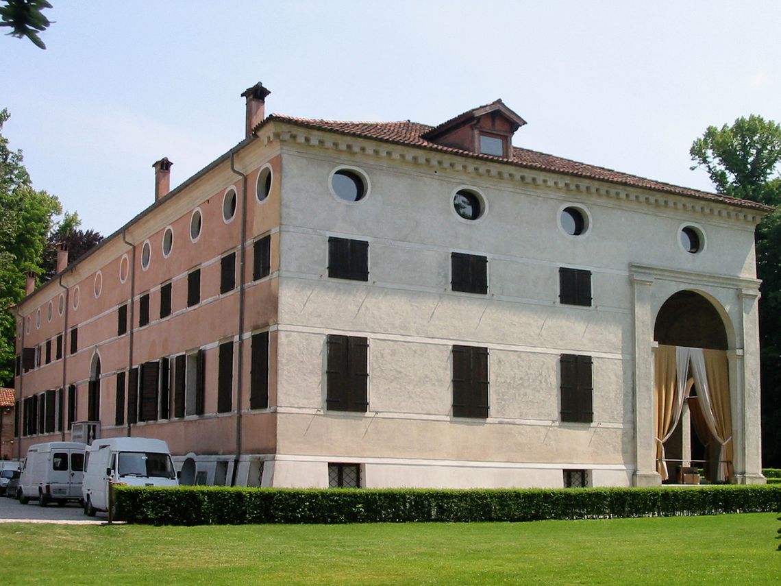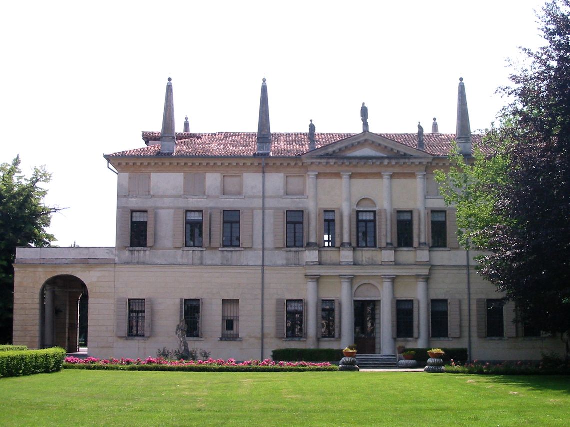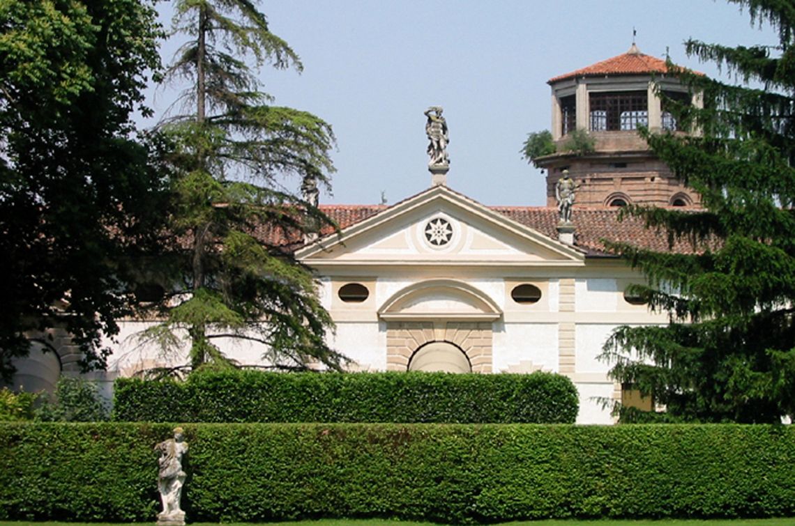 Complesso costituito da villa, grande foresteria porticata e scuderia. La villa è a base rettangolare su tre livelli. In facciata Sud grande pronao loggiato aggettante, a doppia altezza, con colonne ioniche e timpano triangolare con tre statue acroteriali. Quattro pinnacoli sormontano la cornice della stessa facciata. Analoga composizione nella facciata Nord, ma senza corpo aggettante. Riquadri a bassorilievo, in terracotta (1846), sormontano le finestre di piano terra in facciata Sud. La villa si allunga su bassi corpi a terrazzo. Quello occidentale ospita l'oratorio. All'inizio dell'800 viene eliminato il mezzanino tra primo e secondo piano. Vengono demolite le scale laterali di accesso al pronao. Vengono aggiunte basse ali a terrazzo nelle testate. A Est della villa un edificio a base rettangolare e su quattro livelli, di cui un seminterrato e un sottotetto, con grandi archi a tutto sesto sormontati da finestre ovali. Forse inizialmente barchessa poi foresteria nel 1652. Un grande salone centrale, a doppia altezza, viene affiancato da ambienti minori. Una scuderia, ora residenza, è situata a Nord. Presenta base rettangolare e si sviluppa su di un livello più un sottotetto.Specifiche: