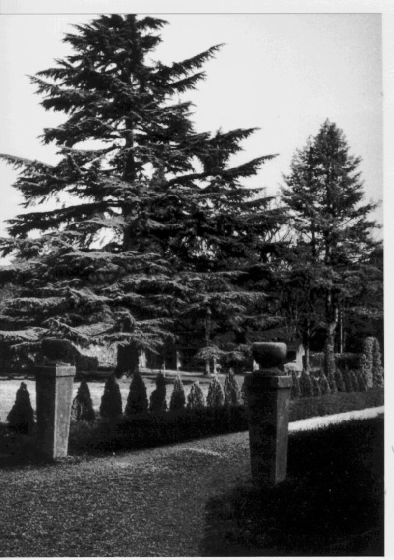 - Descrizione: Pinnacoli in pietra si alzano oltre le linee di gronda della villa.