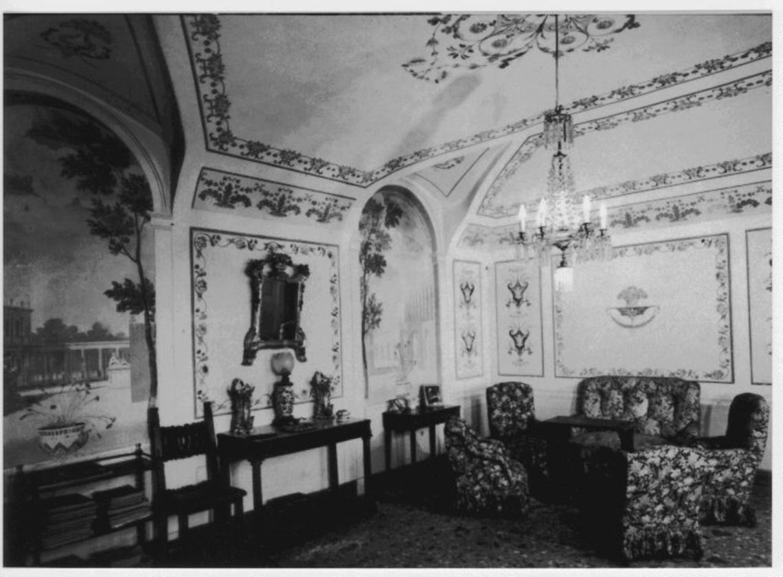 - Descrizione: Il salone al piano terra è affrescato con vedute di paesaggi del lago di Garda.