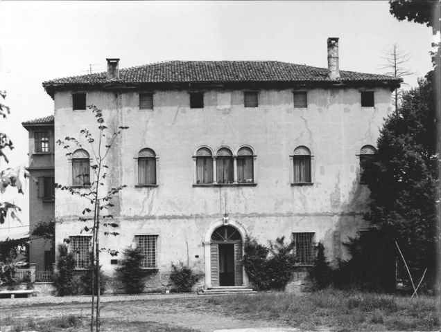 Il complesso è costituito da una casa padronale, di pianta rettangolare, che si sviluppa su tre piani con una torre colombara al centro, mentre sul lato a ovest della corte, isolato, si elevava un piccolo edificio porticato sorretto da pilastri. Si ritiene che possa risalire a questo sito l'ubicazione del castello medievale di Gazzo.Specifiche: