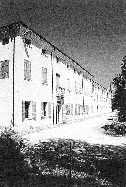 Gli edifici si dispongono a "L" attorno a una vasta corte. Questa è occupata in parte da una grande aia di cemento e in parte da un prato. L'edificato è costituito dalla casa padronale e dalle scuderie, adiacenti e disposte ortogonalmente alla strada, sull'altro lato l'edificato è composto da tre edifici affiancati.Specifiche: