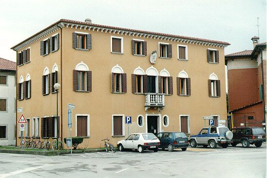 L'edificio, prospiciente la piazza di Arcade, è stato integralmente ricostruito in epoca recente. Un documento del 1683 attesta che al palazzo era annesso un cortile cinto da un muro.Specifiche: