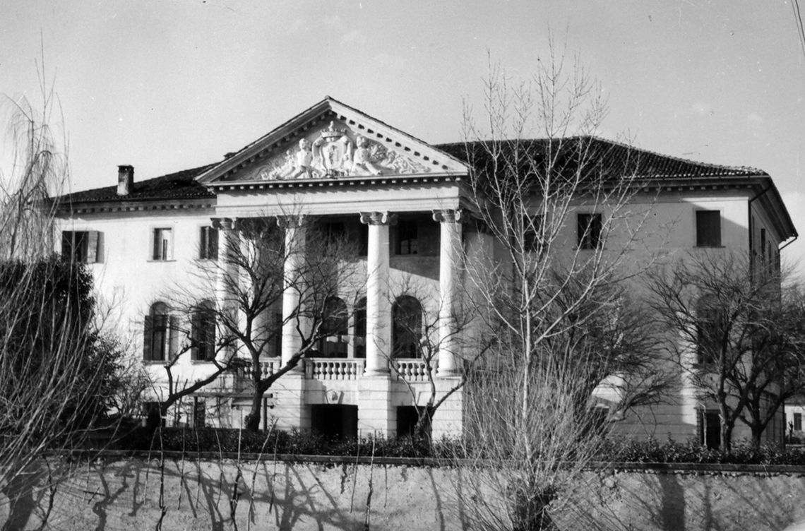 - Descrizione: Grande pronao tetrastilo con colonne di ordine ionico che sostengono trabeazione e frontone recante nel timpano l'arma gentilizia degli Onigo sorretta da due putti.