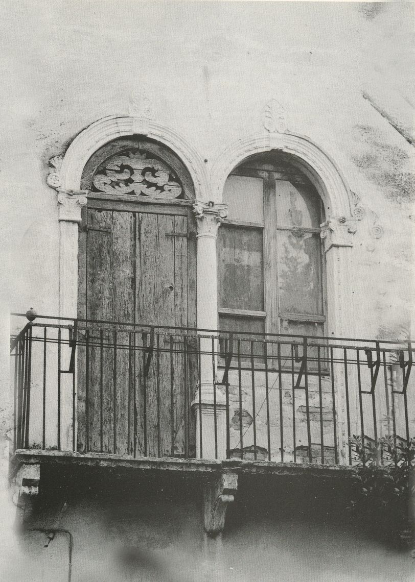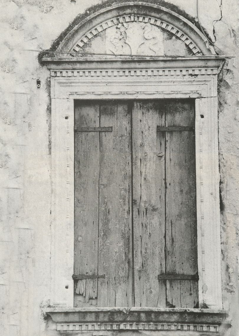 - Descrizione: Nell'ambiente rettangolare risultano decorate tutte le pareti secondo una partitura architettonica dove si alternano scene allegoriche ed edicole; le edicole, decorate da marmi policromi, presentano nicchie inquadrate da lesene scanalate di ordine corinzio dove sono ospitate Divinità olimpiche e Personaggi mitologici. I mensoloni in pietra che reggono le travi principali, fungono da chiave delle sottostanti nicchie dipinte. Buona parte dell'intonaco dipinto è stato ricoperto da scialbo. A tutt'oggi risultano visibili solo parte della parete sud, di fronte all'ingresso, la porzione sinistra della parete ovest e due riquadri della parete nord, dove si trova l'ingresso dall'esterno. La stanza ricavata a est, con l'erezione della tramezza, è completamente ricoperta da scialbo. La parete sud, di fronte all'ingresso, è quella meglio leggibile per le ampie porzioni libere dallo scialbo, che ricopre del tutto basamento e fascia conclusiva, forse in origine rivestita da una cornice lignea. La decorazione inizia a sinistra: Alessandro Magno che doma Bucefalo alla presenza del padre Filippo e dei suoi soldati; segue una nicchia con Giove, assiso con l'aquila ai piedi, che tiene nella mano sinistra delle folgori e sul lato destro una Figura femminile (Ibidem), figura non identificata, ma che potrebbe essere Giunone. La scena successiva, presenta l Allegoria di Venezia Della parete ovest è visibile la nicchia al limite sinistro, dove è ospitato Perseo, con il petaso impostogli da Mercurio e la testa della Gorgone nella mano sinistra. Della scena successiva sopra la porta emerge una figura femminile in primo piano che reca un vaso prezioso, mentre sullo sfondo un vecchio barbuto conversa con un'altra figura. Della parete nord è visibile, a sinistra della porta d'ingresso, una mezza figura di Vittoria alata con foglia di palma nella mano sinistra e ramo d'alloro nella destra; all'estremità destra della parete, in contiguità con la tramezza ottocentesca, si trova un frammento di figura femminile capitevelata.