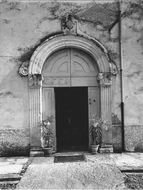 - Descrizione: Nella lunetta dell'andito con volta a crociera che sovrasta la rampa delle scale che conducono al primo piano, è dipinta una Madonna col Bambino. La Vergine trattiene il Bambino in braccio con la mano sinistra, mentre nella destra ostenta un rosario.