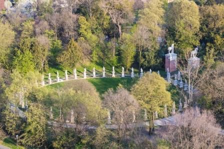- Osservazioni: Nell'Ottocento, al giardino costituito da peschiere squadrate e viali rettilinei ornati con statue, viene sostituito un parco disseminato da manufatti tra cui un belvedere con tetto a pagoda, un frastagliato laghetto e sentieri tortuosi.